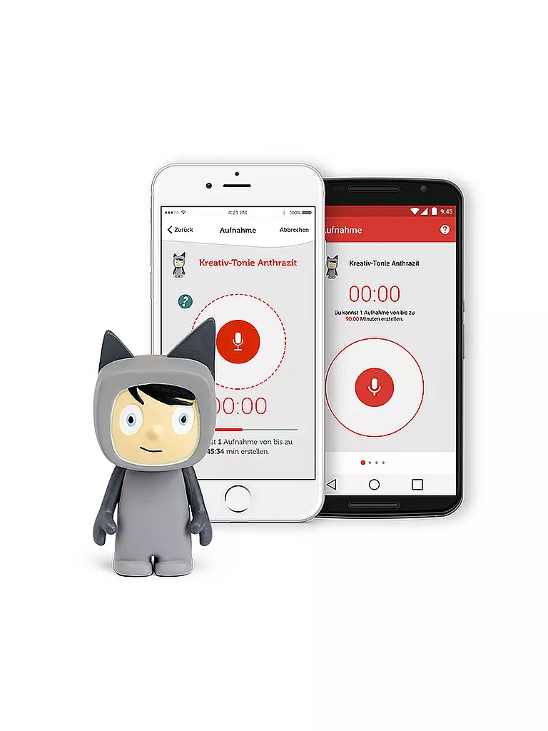 Mit der dazugehörigen, kostenlosen Smartphone-App können eigene Sprachaufnahmen aufgezeichnet und dem Kreativ-Tonie zugewiesen werden.